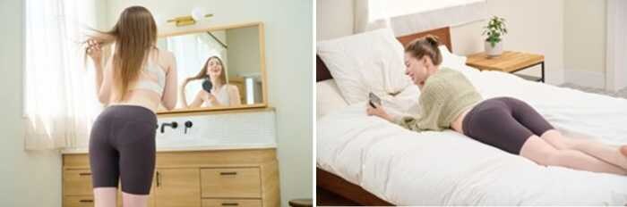 ヒップトーンは、充電式&コードレスでどこでもトレーニング可能。リモコン不要のワンタッチ操作で、家事やデスクワークの合間にも使えます。