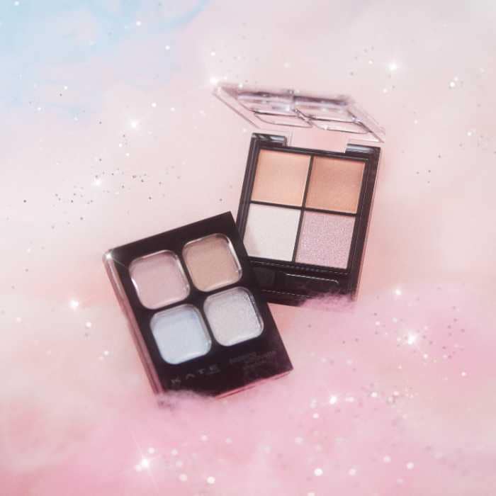 同日発売の「ポッピングシルエットシャドウ」限定色は、淡いパステルカラーで儚げなのに印象的な目もとを演出。くすみミュートマット×多色グリッターの質感差で立体感がアップします。