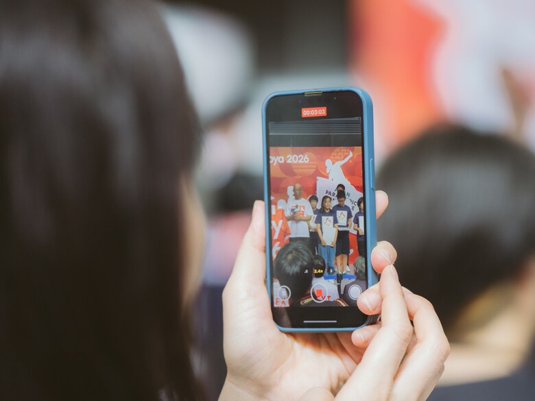 セレモニーの後は、アジアパラのマスコット「ウズミン」と記念撮影。ニュースを通じてマスコットを知っていたという西田は、着ぐるみを初めて目にして愛着が湧いたと話す。「来年、大会に出場してマスコットのグッズをたくさん買って帰りたい」と思いをめぐらせた。
