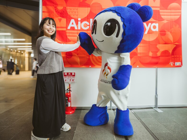 「水の精霊」をイメージした「ウズミン」と。チャームポイントは大きな目とシャチホコのような頭だそうその後、フォトスポットで写真を撮ったり、愛知・名古屋2026 公式ライセンスグッズショップを見て回ったりしていると、人混みの中で西田に向かって手を振る元アスリートが! 東京2020パラリンピックのバドミントン・女子ダブルスで銅メダルに輝いた伊藤則子さんだ。スイマーの西田と伊藤さんは競技こそ異なるものの、ナショナルトレーニングセンターの更衣室で遭遇することも多かった“アスリート仲間”。伊藤さんはパリパラリンピックの後、第一線から退いており、ふたりは久しぶりに再会した。パリの前は「一緒にパリに行けるといいね」と互いに声をかけ合い、それが実現。わずかな時間ながら、思い出話に花を咲かせた。