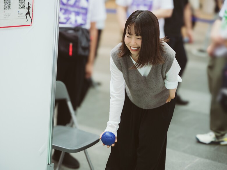 ボッチャ体験ブースも。パラ水泳の合宿で体験して以降、ボッチャにはまっているという西田。ボッチャセットを購入して家族とプレーしているのだとか!