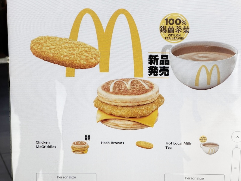 本国のマクドナルドには、同じ中華系の地域でも中国や台湾の店舗とはまったく違うフードを販売しています。それは朝マックにもいえます。