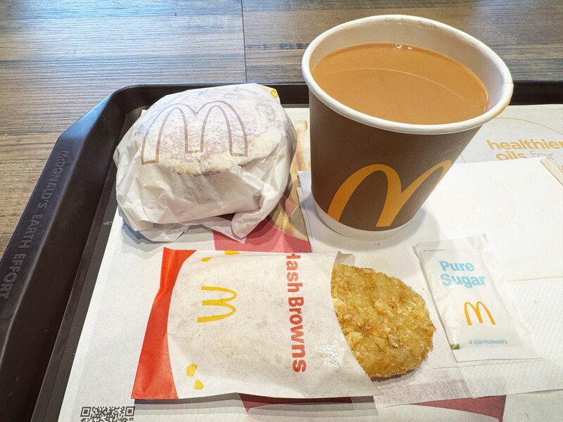 ちなみに価格はドリンクとハッシュポテトのセットで38香港ドル、日本円にして約740円です。ドリンクは香港ミルクティーを選びました。