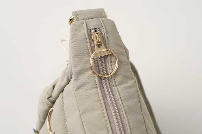 さらに、夜間の安全をサポートするリフレクトチャーム付きで、デザイン性と安心感の両立が叶いました。ショルダーストラップにも本体と同じボンディング素材を採用し、肩に優しくフィットします。