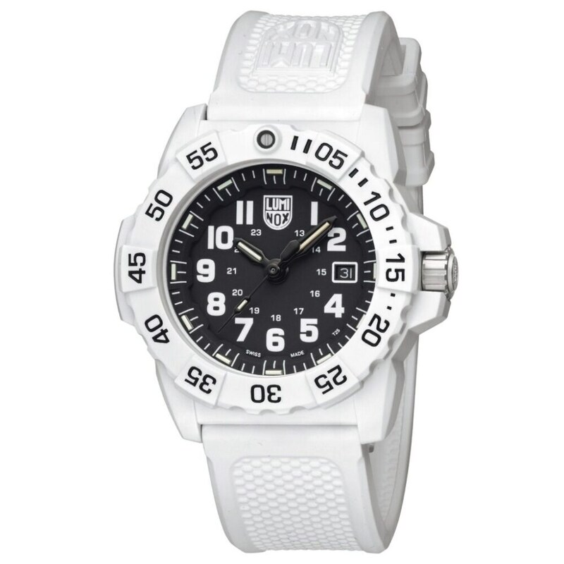 極寒の雪山や氷で覆われた過酷な環境下で活動する隊員のために設計されたホワイトモデル。ファイバーグラス製ケースとベゼルを採用することで、軽量かつ耐久性の高いモデルに仕上がっている。文字盤は定番のブラックだが、ホワイトのインデックスとライトによってコントラストの高さ=視認性の高さが計算された設計。本体に合わせて、純正ラバーストラップもホワイトで統一されており、当然ながらファッション性も◎だ。SPEC:ケース径/45㎜、ケース厚/14㎜、ムーブメント/Ronda 515、防水/200m、20atm、ケース/ ファイバーグラスケース、リューズ/ねじ込み式、ベゼル/ファイバーグラス・逆回転防止機能、風防/ミネラルクリスタルガラス、生産国/スイス、プライス/8万4150円