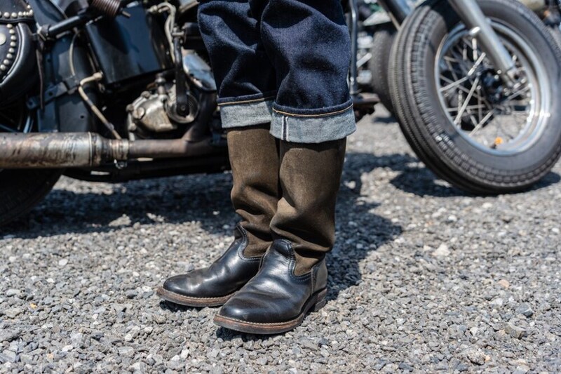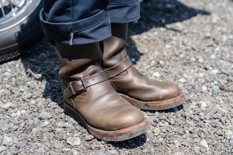 ラングリッツのキャスケードに太めのデニム、そして足元はコンビレザーのモーターサイクルパトロール。まさにオレゴン発のクラシカルなバイクスタイルのお手本。シャフトのラフアウトのエイジングが抜群の雰囲気だ。