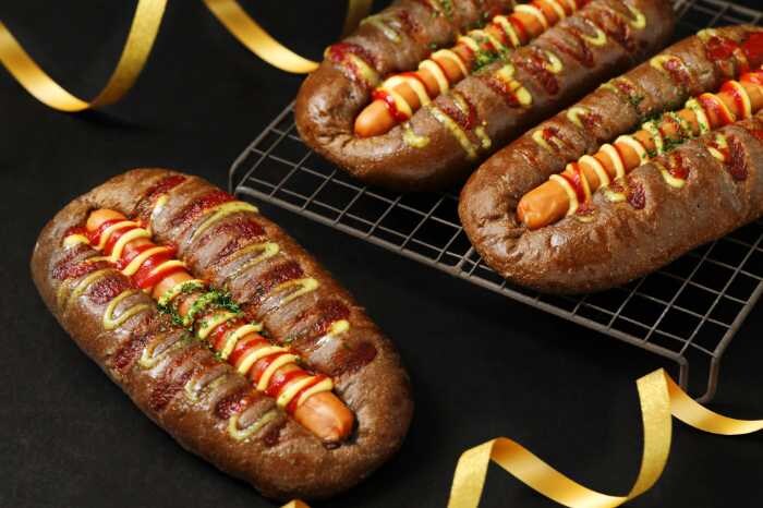 新作『ブラックウインナーパン』(196円)は、ブラックココア生地にウインナー、ケチャップ、マヨネーズを合わせた甘じょっぱい一品。