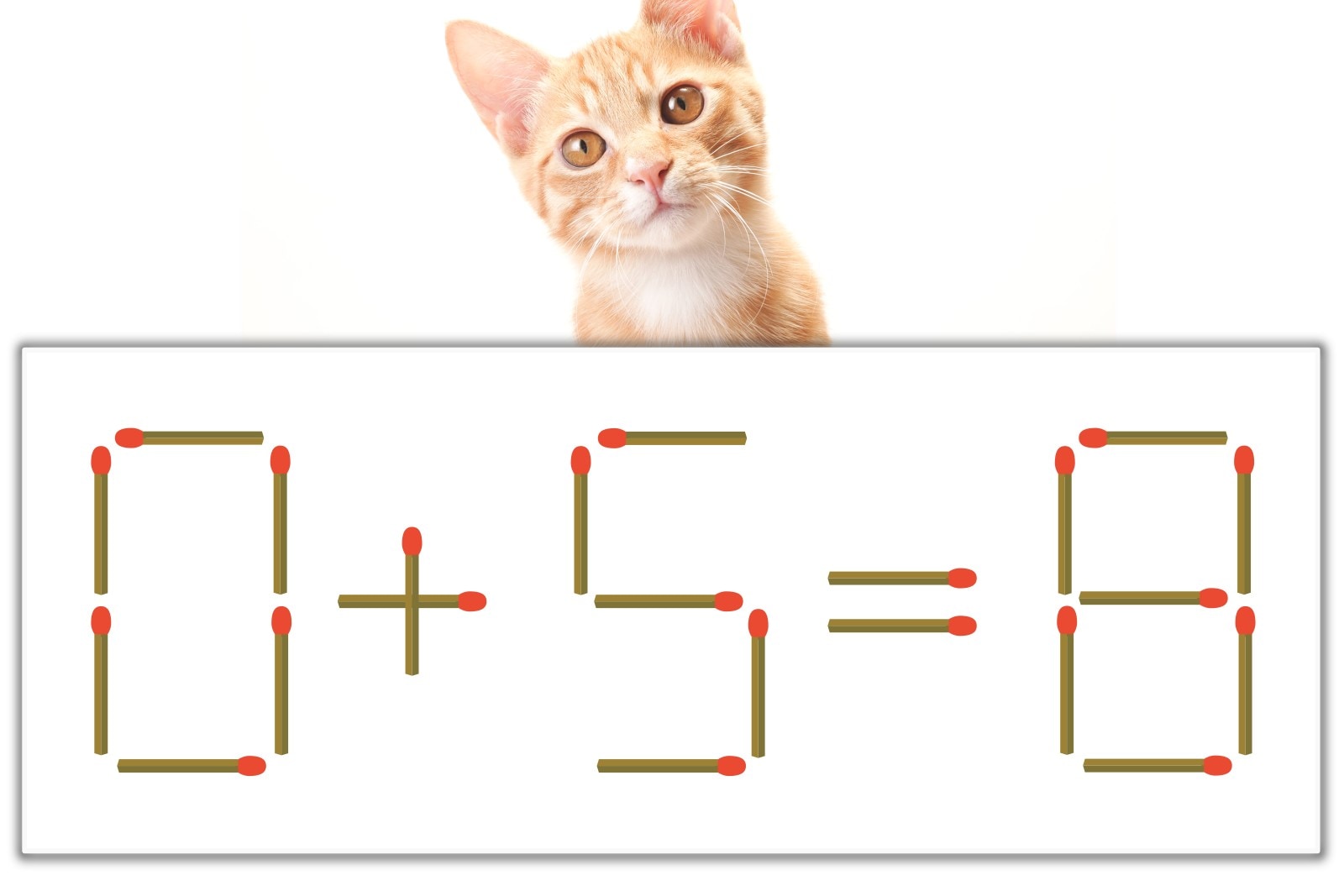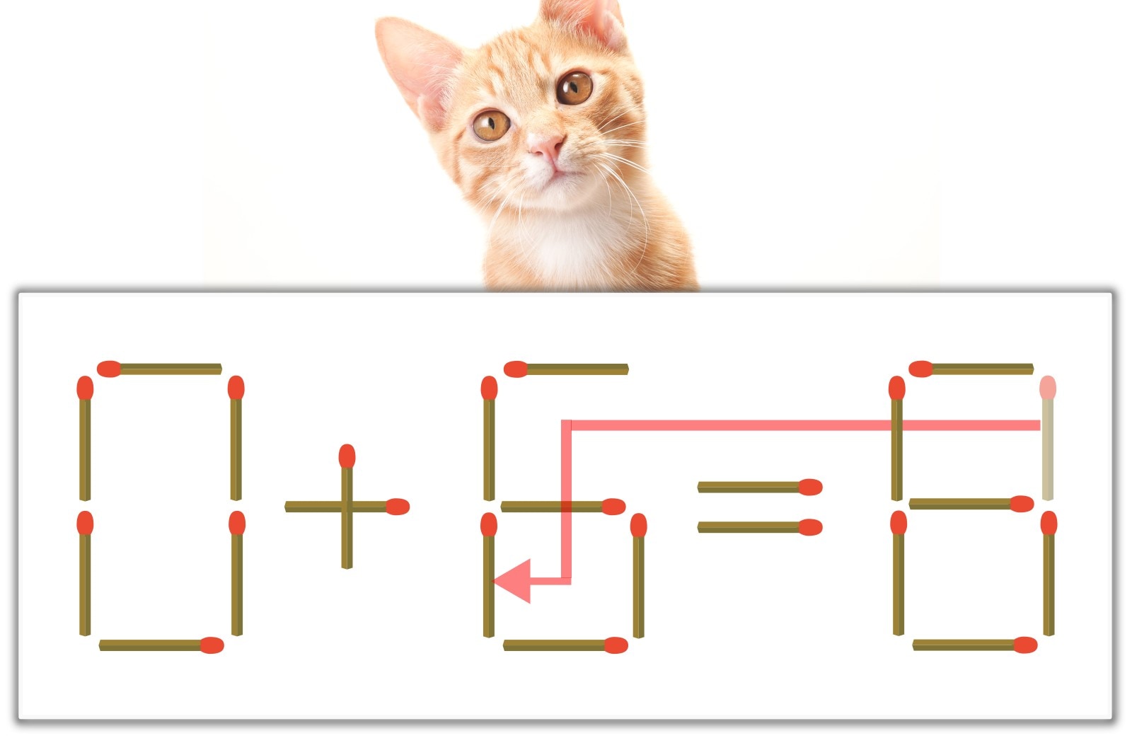 「8」のマッチ棒を1本、左にスライドさせて「6」を作り、「0+6=6」にする。※解答は複数ある場合があります。