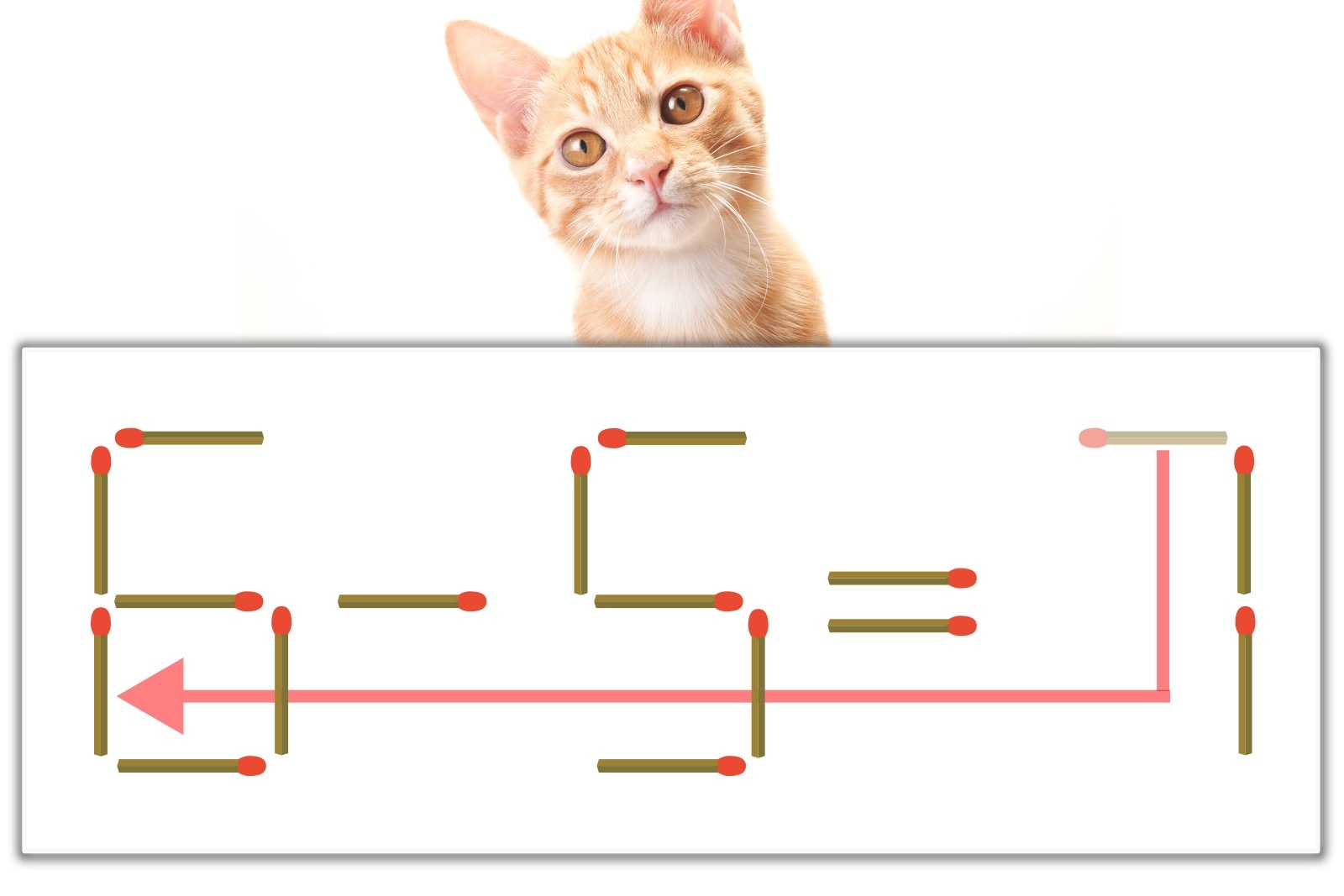 【問題】マッチ棒を1本動かして式を正しくしてください。