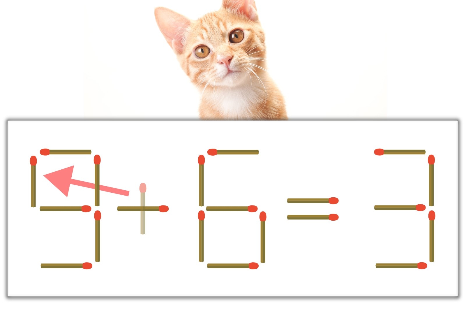 【問題】マッチ棒を1本動かして式を正しくしてください。