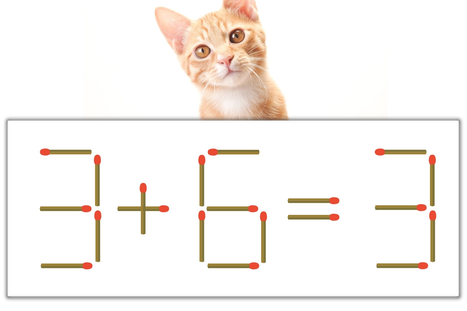 「+」のマッチ棒を1本、左にスライドさせて「9」を作り、「9-6=3」にする。※解答は複数ある場合があります。