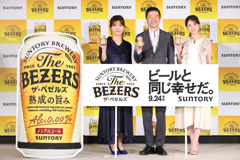 サントリーが新たに送り出すノンアルコールビールテイスト飲料「ザ・ベゼルズ」が、2025年9月24日(水)に全国発売される。それに先立ち、都内で開催された商品説明会・新CM発表会に、CMメッセンジャーを務めた俳優の浅野忠信とスペシャルゲストに芸人のヒコロヒー、タレントの松村沙友理が登壇。本物のビールさながらの飲みごたえに、驚きと称賛の声が飛び交った。