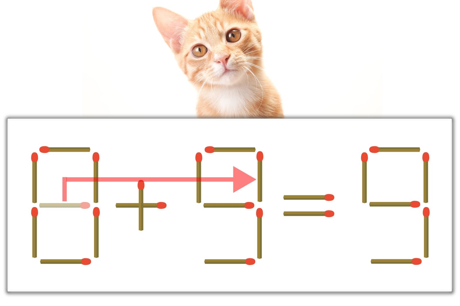 【問題】マッチ棒を1本動かして式を正しくしてください。