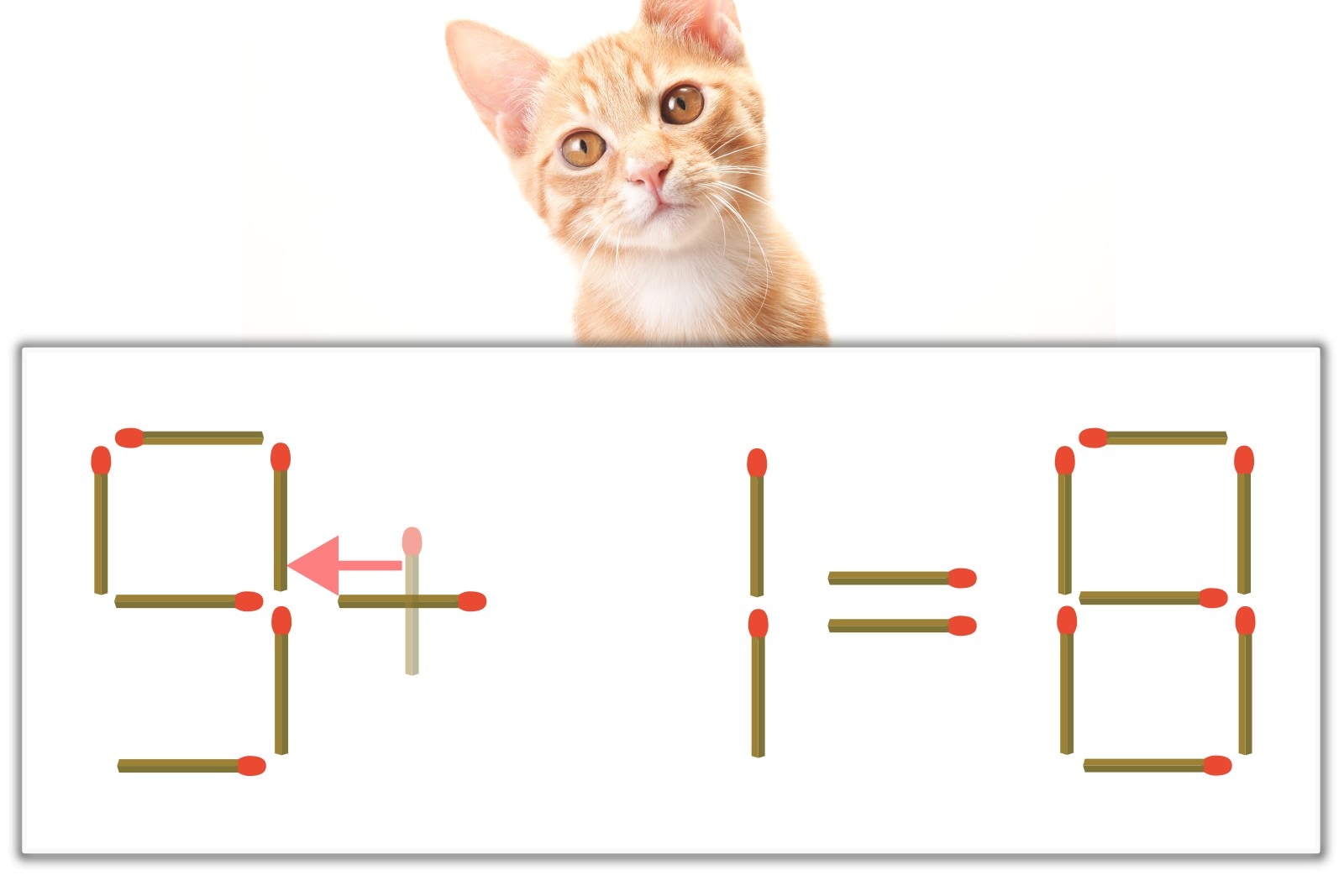 「+」のマッチ棒を1本、左にスライドさせて「9」を作り、「9-1=8」にする。※解答は複数ある場合があります。