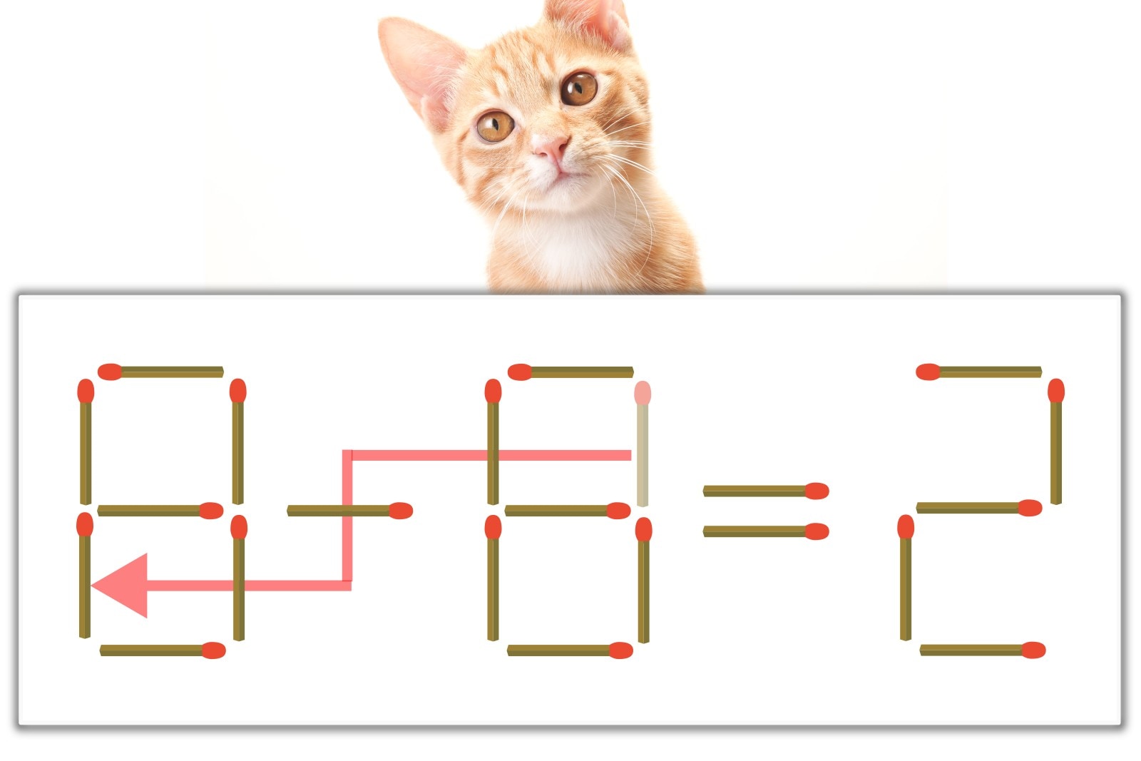 「8」のマッチ棒を1本、左にスライドさせて「8」を作り、「8-6=2」にする。※解答は複数ある場合があります。