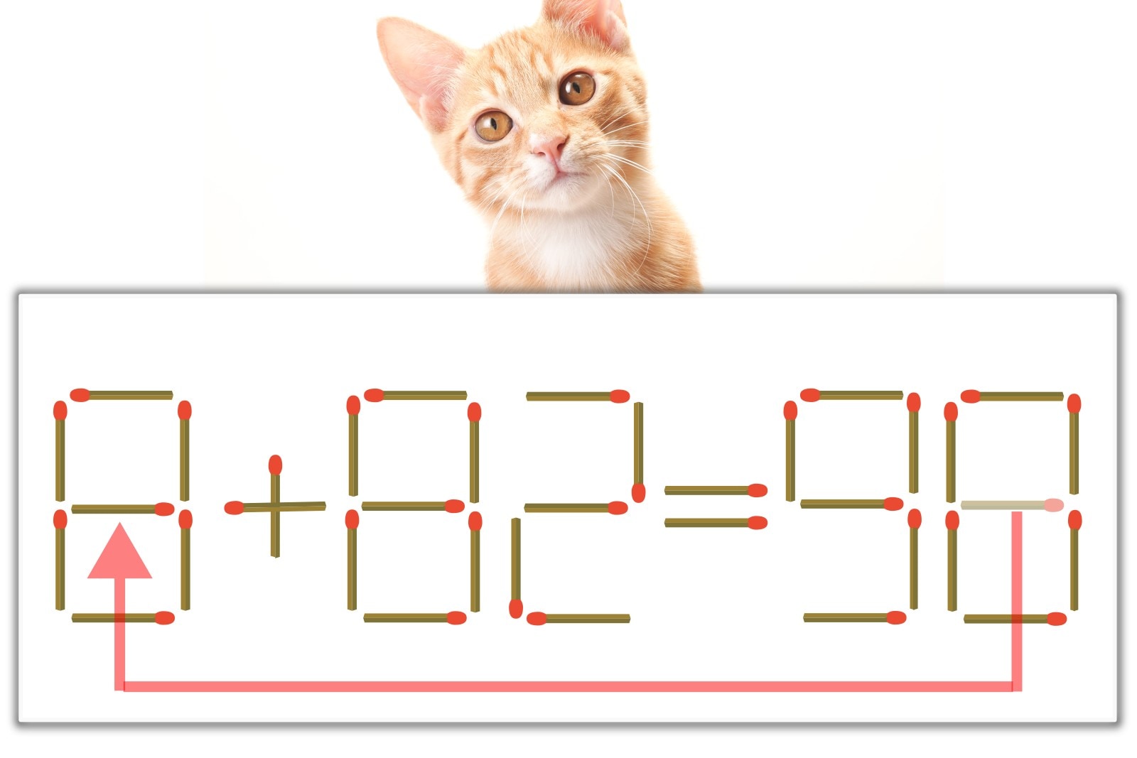 「8」のマッチ棒を1本、左にスライドさせて「8」を作り、「8+82=90」にする。※解答は複数ある場合があります。