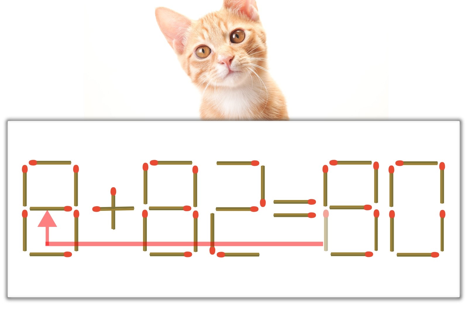 「8」のマッチ棒を1本、左にスライドさせて「8」を作り、「8+82=90」にする。※解答は複数ある場合があります。