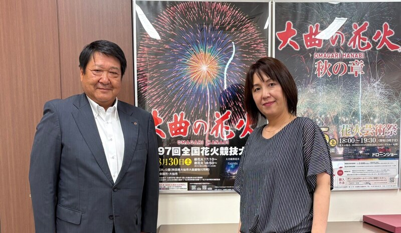 大曲商工会議所会頭の齋藤 靖さん、同花火振興事業部長の淀川真樹子さん。