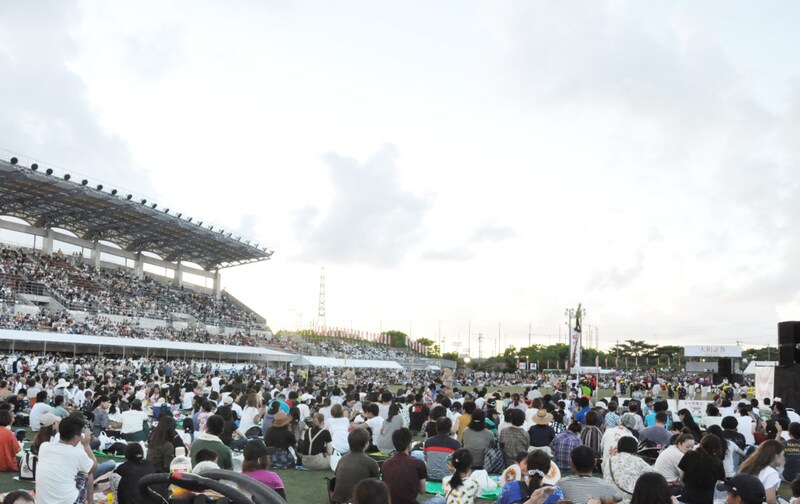 終盤には沖縄伝統の踊りである「カチャーシー」で会場は一つに!「幸せを持ち寄り、かき混ぜて分かち合おう」との願いを込め、演者も観客も一つになって踊りまくります。最後にはレーザーショーと打上花火で締め!その一体感と壮大な演出は、参加者全員が「チムドンドン」を感じる瞬間です。