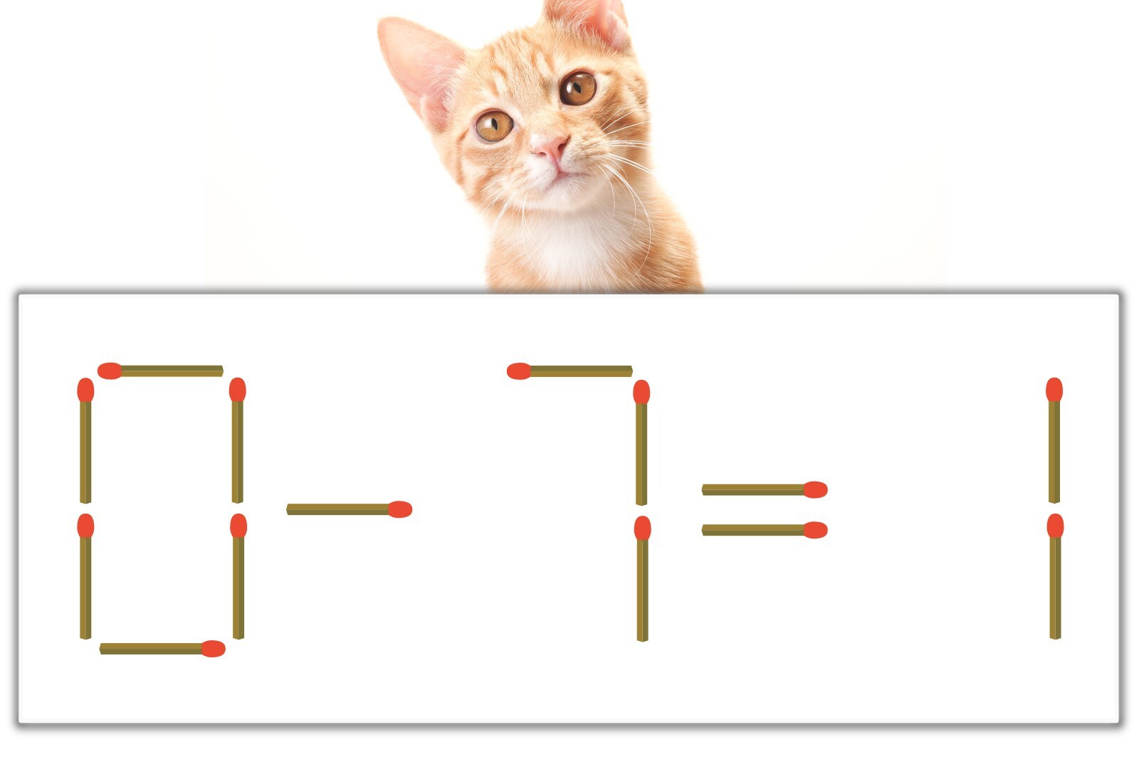 「7」のマッチ棒を1本、左にスライドさせて「+」を作り、「0+1=1」にする。※解答は複数ある場合があります。