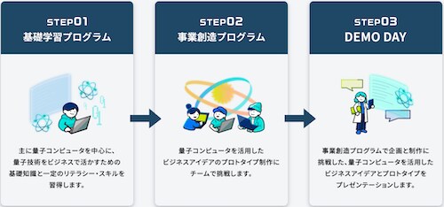 また、事業創造プログラムでは、基礎学習プログラムに参加したジェネラリストとエンジニアから有志を募り、量子コンピュータを活用したビジネスアイデアのプロトタイプ制作に挑戦するとともに「DEMO DAY」にてビジネス企画とプロトタイプをプレゼンテーションし、量子産業ネットワークを広げることができる。
