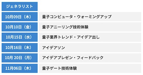 Q-Questでは、1ヶ月程度かけて量子コンピュータのリテラシー・スキルを身につける「基礎学習プログラム」と、基礎学習プログラムで学んだ内容をベースにビジネス性があり、プロトタイプ制作に挑戦する「事業創造プログラム」を開催。