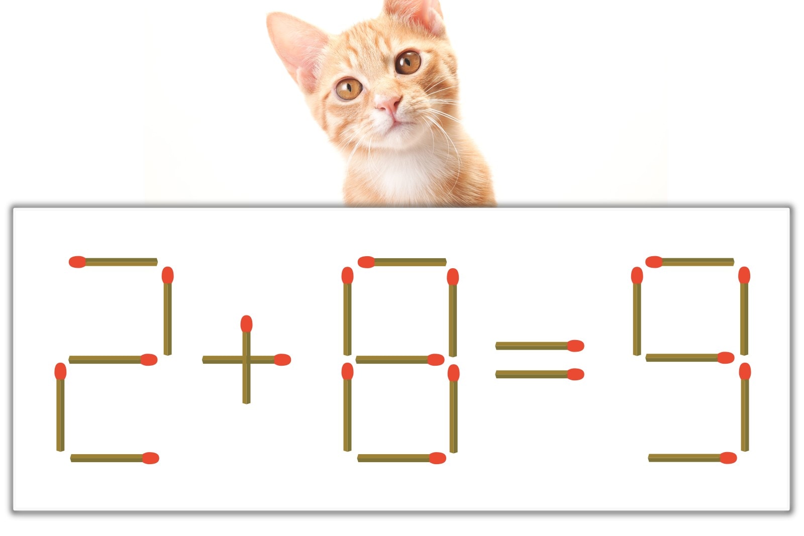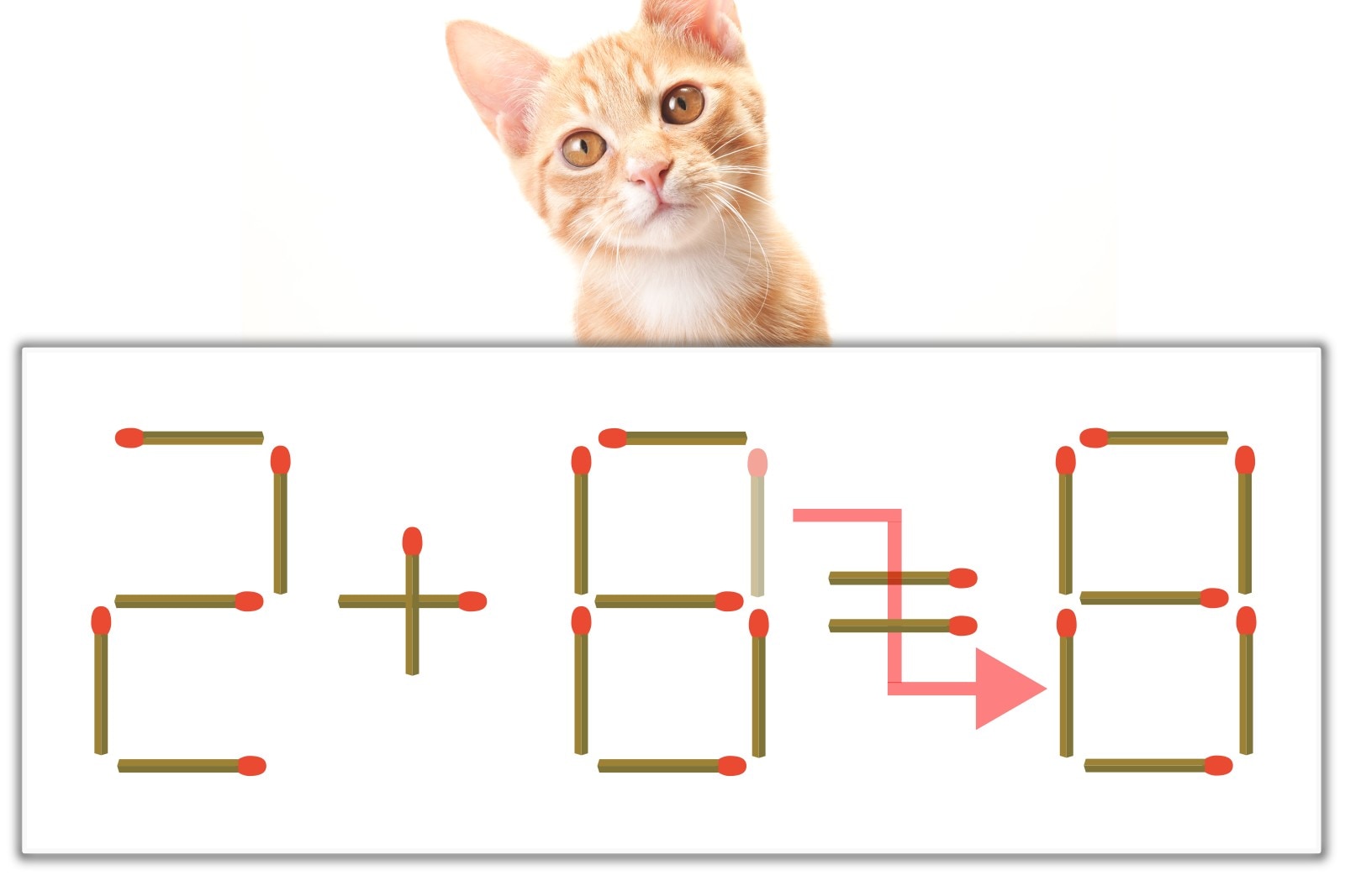 「8」のマッチ棒を1本、右にスライドさせて「8」を作り、「2+6=8」にする。※解答は複数ある場合があります。