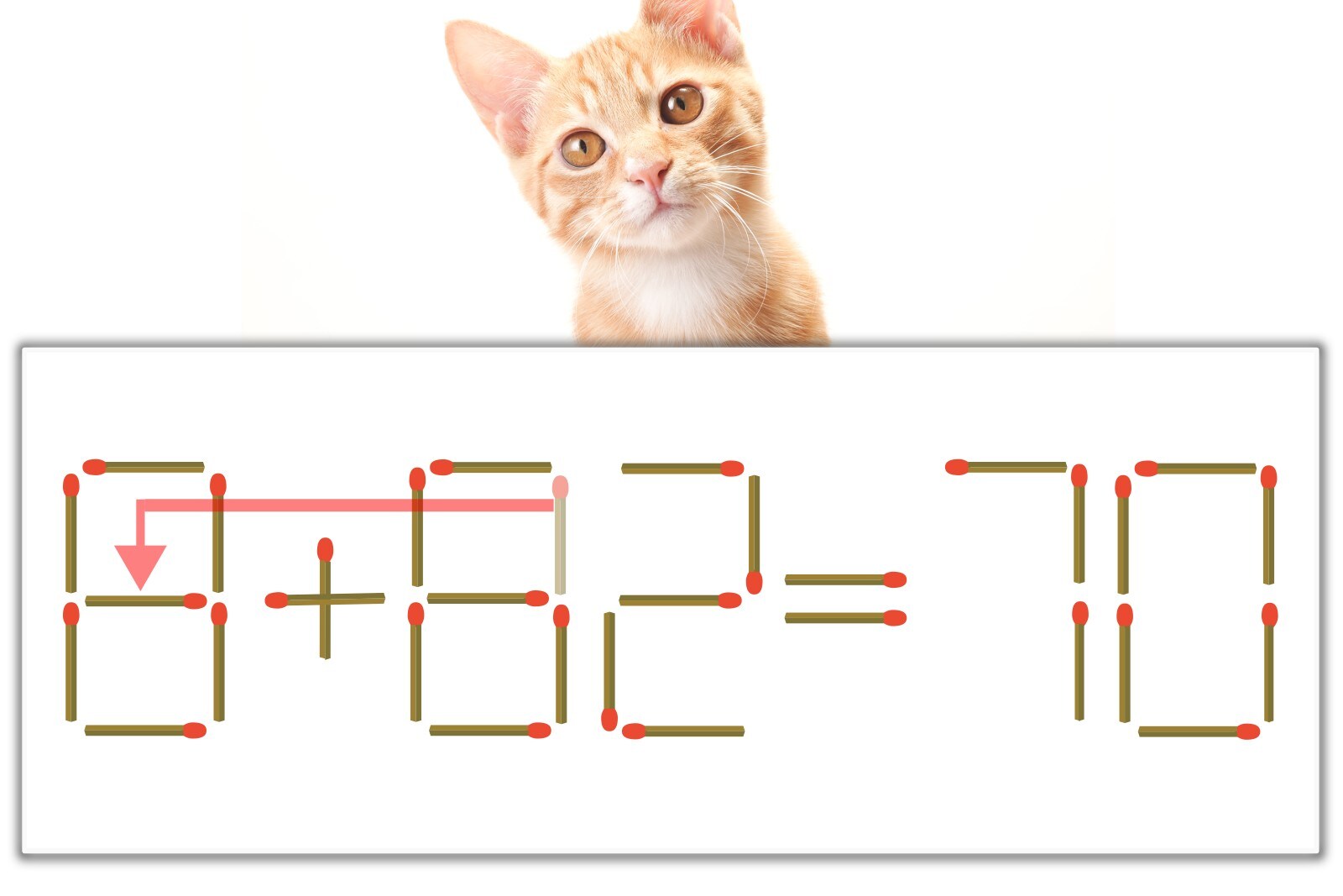 「8」のマッチ棒を1本、左にスライドさせて「8」を作り、「8+62=70」にする。※解答は複数ある場合があります。
