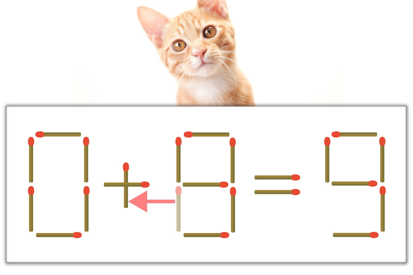 「8」のマッチ棒を1本、左にスライドさせて「+」を作り、「0+9=9」にする。※解答は複数ある場合があります。