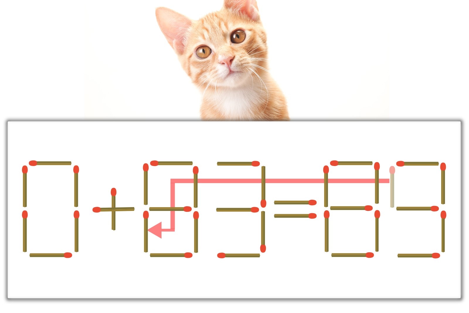 「9」を別の数字に変化させると答えが導き出せます。9のマッチ棒を1本移動させて、問題の「9」を「8」にしてみましょう。すると、「0+83=83」が成立します。