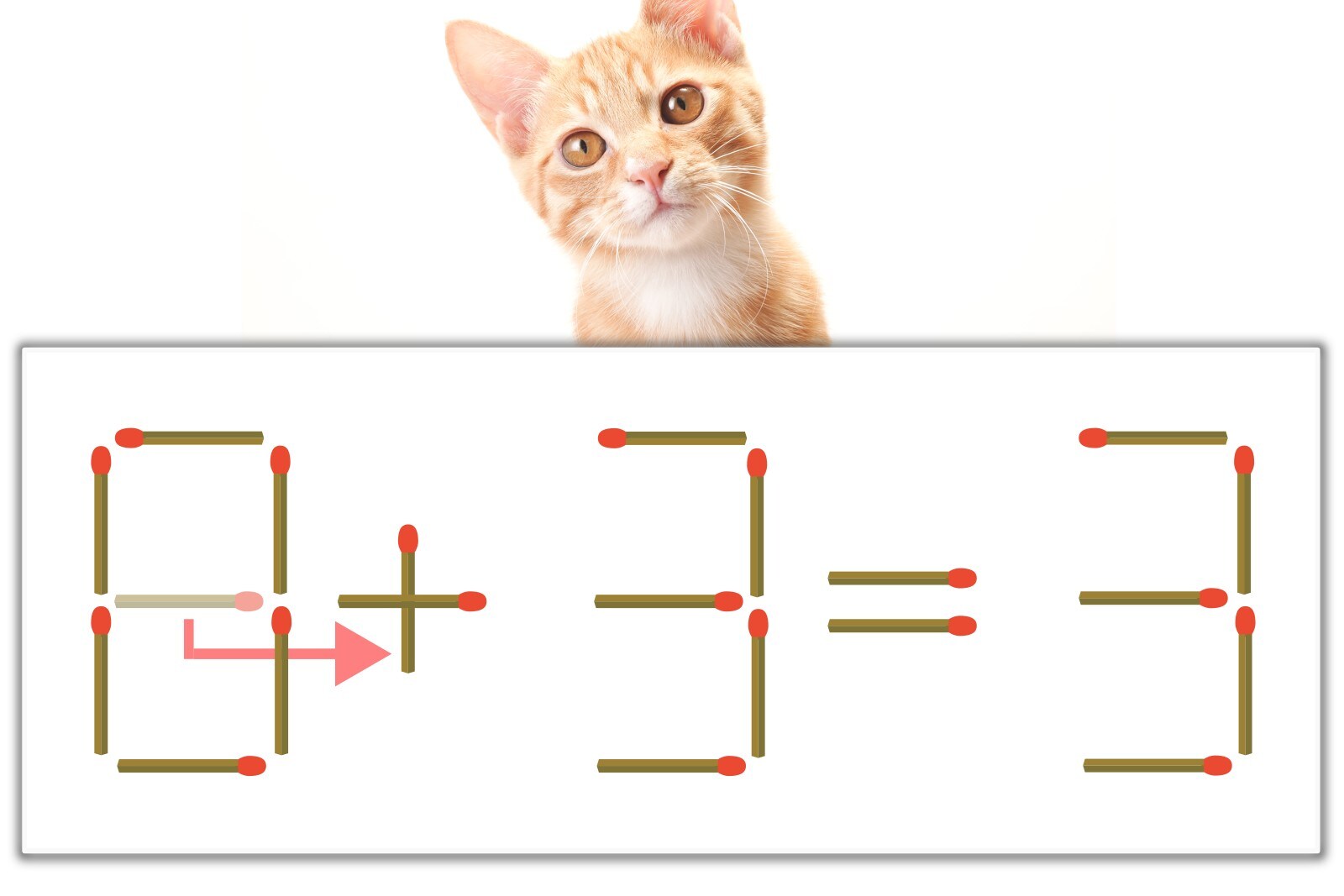 「8」のマッチ棒を1本、右にスライドさせて「+」を作り、「0+3=3」にする。※解答は複数ある場合があります。