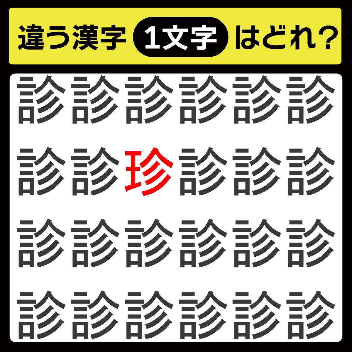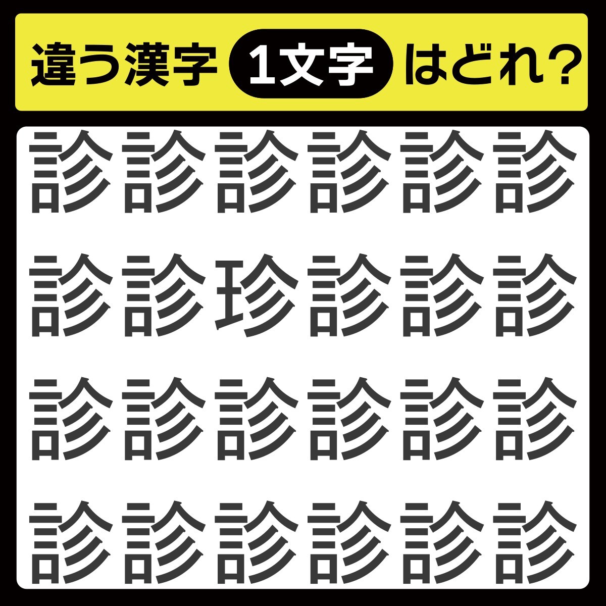 毎日配信中「毎日脳トレ」の時間です! 本日のクイズは「漢字のまちがい探し」に挑戦♪ 同じ漢字が並んでいるように見えますが、実は1つだけ違う漢字が……。よ~く探してみてください!