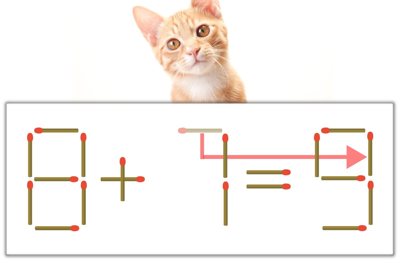 【問題】マッチ棒を1本動かして式を正しくしてください。