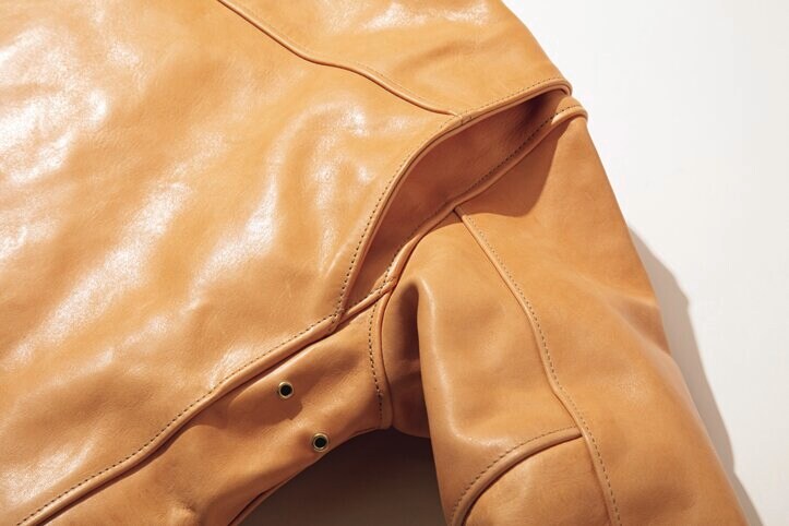 英国「エアロレザー」の流れを汲むシモンズビルトとのコラボレーションモデル。1.3㎜厚のヘビーなイタリアンホースハイドを使用し、3ポケットのソリッドなスタイリングを構築。無駄のないシンプルなデザインゆえにヌメ革ホースハイドのダイナミックなエイジングを存分に味わえる。