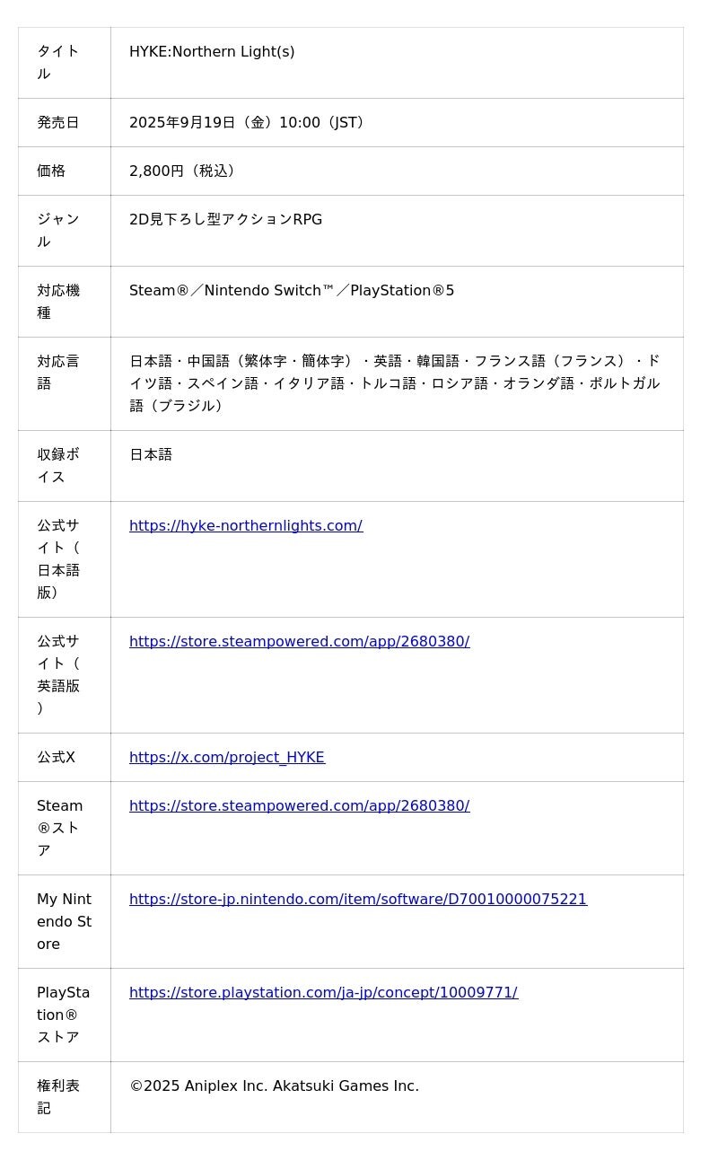 ■ 『HYKE:Northern Light(s)』発売開始!発売記念セールを開催!
