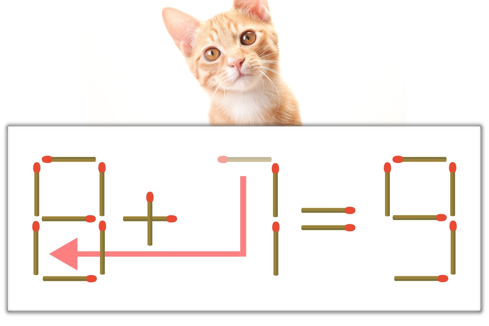 【問題】マッチ棒を1本動かして式を正しくしてください。