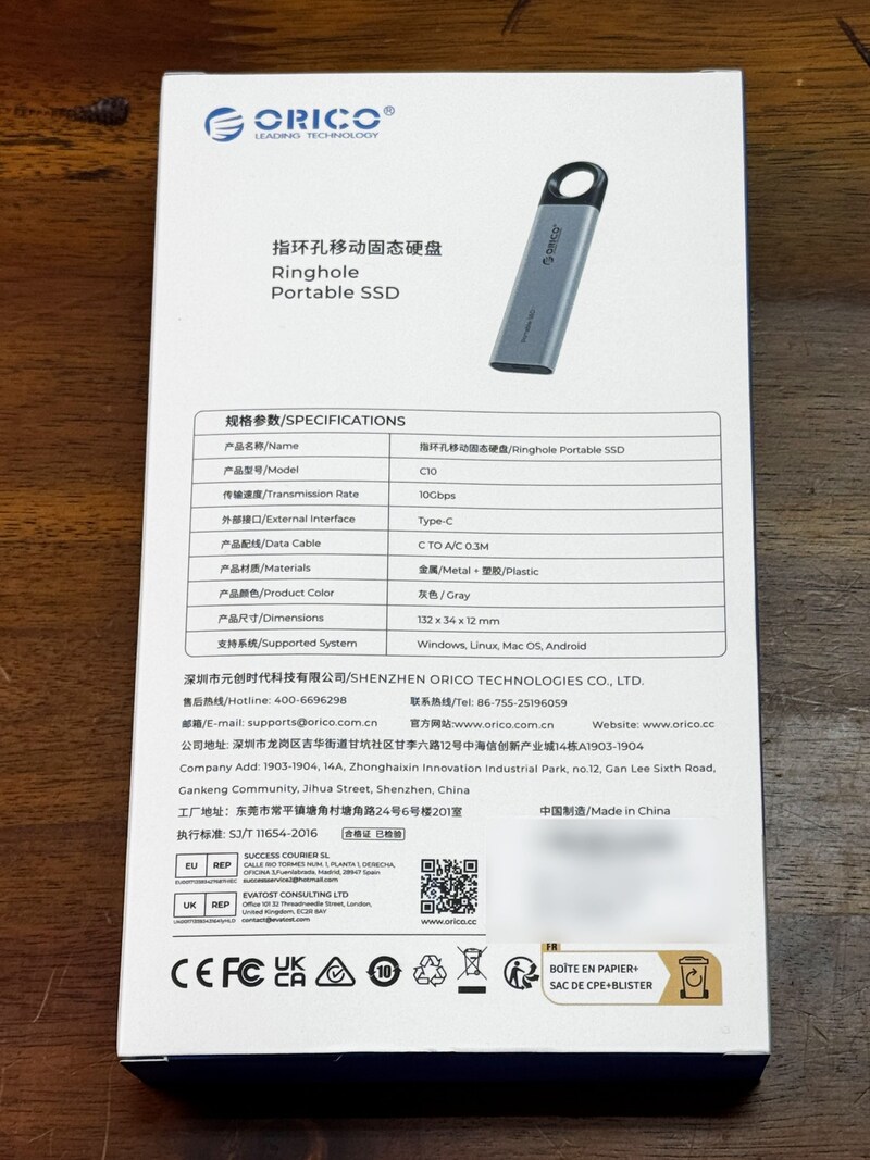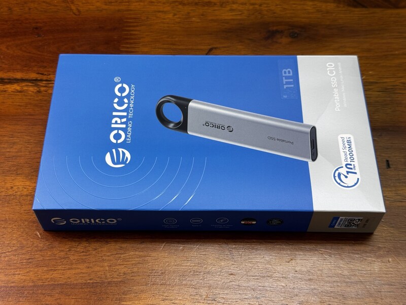 ORICO社の「C10-1T」が凄まじかった。小型でありながら1TBという大容量。さらにUSB-C接続で最大1050MB/秒という高速転送が可能。長さ13.2cm、幅1.2cm、厚み3.4cmという超絶スマートな小型で、重さも60グラムの超軽量。当然ながらSSDなのでHDDより衝撃に強い。