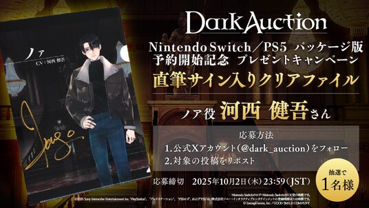 『ダークオークション』の Nintendo Switch版および PlayStation5版パッケージソフトは、グッドスマイルカンパニー公式オンラインショップをはじめ、全国の対象店舗や各ECサイトにて予約受付中です。