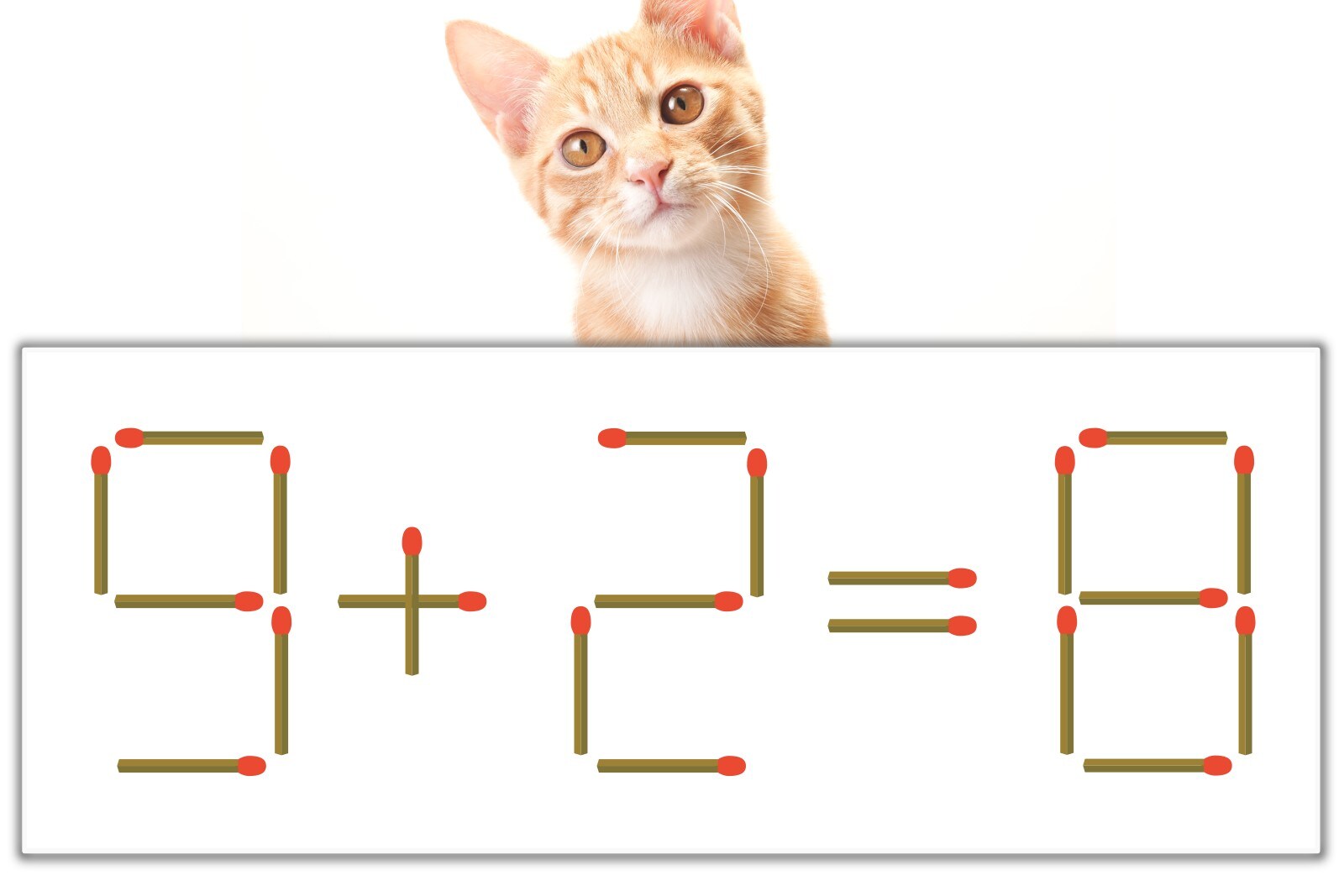 【問題】マッチ棒を1本動かして式を正しくしてください。