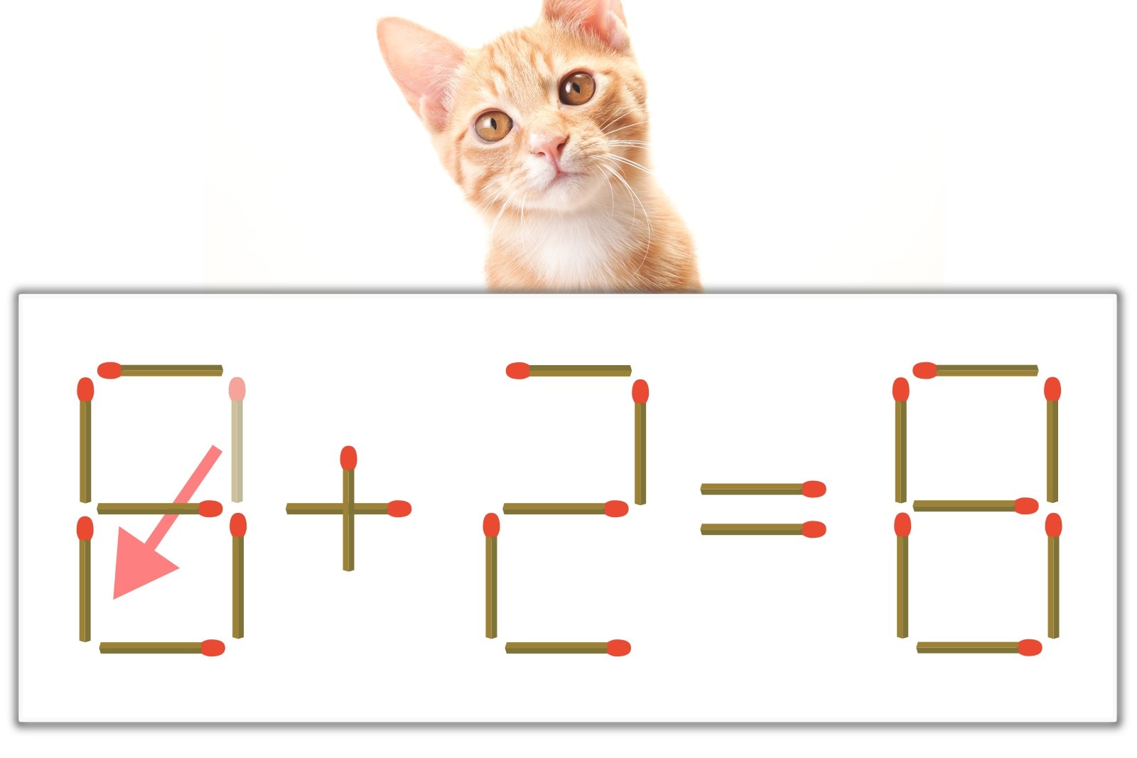 「9」のマッチ棒を1本、左下にスライドさせて「6」を作り、「6+2=8」にする。※解答は複数ある場合があります。