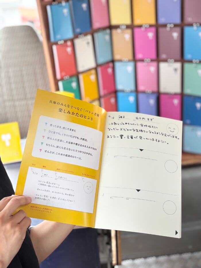 心が動いた体験を、2つの方法で発信。「みんなのひと言ボード」や「みんなのバトン書簡」ノートに自分自身の感想を自由に書き込んでみたり、先に書かれた誰かの感想に対して付箋でコメントを返してみたりと、自分の言葉が誰かの共感や支えになり次の方へのバトンとして紡がれてゆきます。
