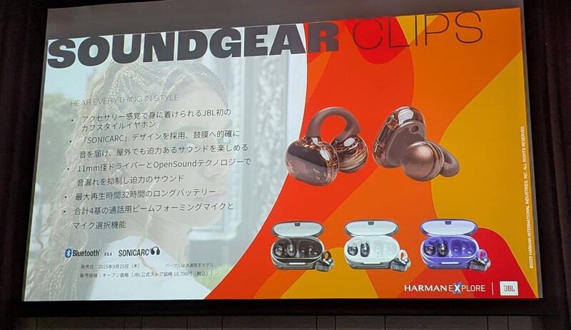 ハーマンインターナショナルは、JBLブランドの完全ワイヤレスイヤホン「Soundgear Clips」を発表。9月25日から順次、販売を開始します。