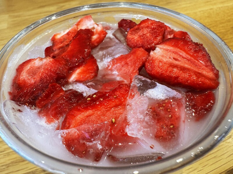 液体をほとんど飲み終えた段階で、一気にフリーズドライのストロベリーをムシャムシャと食べると至高。ピンクドリンクをたっぷり吸い込んでるからおいしさアップでんがな。