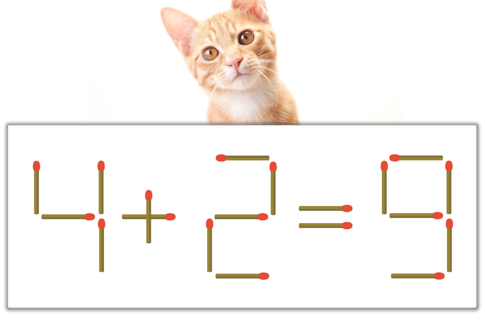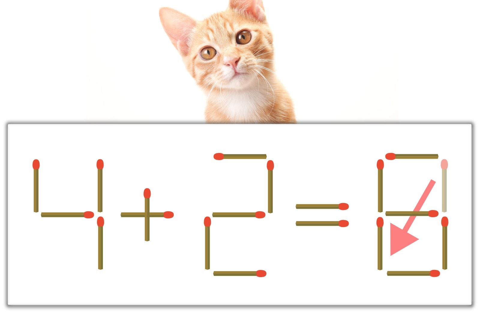 【問題】マッチ棒を1本動かして式を正しくしてください。