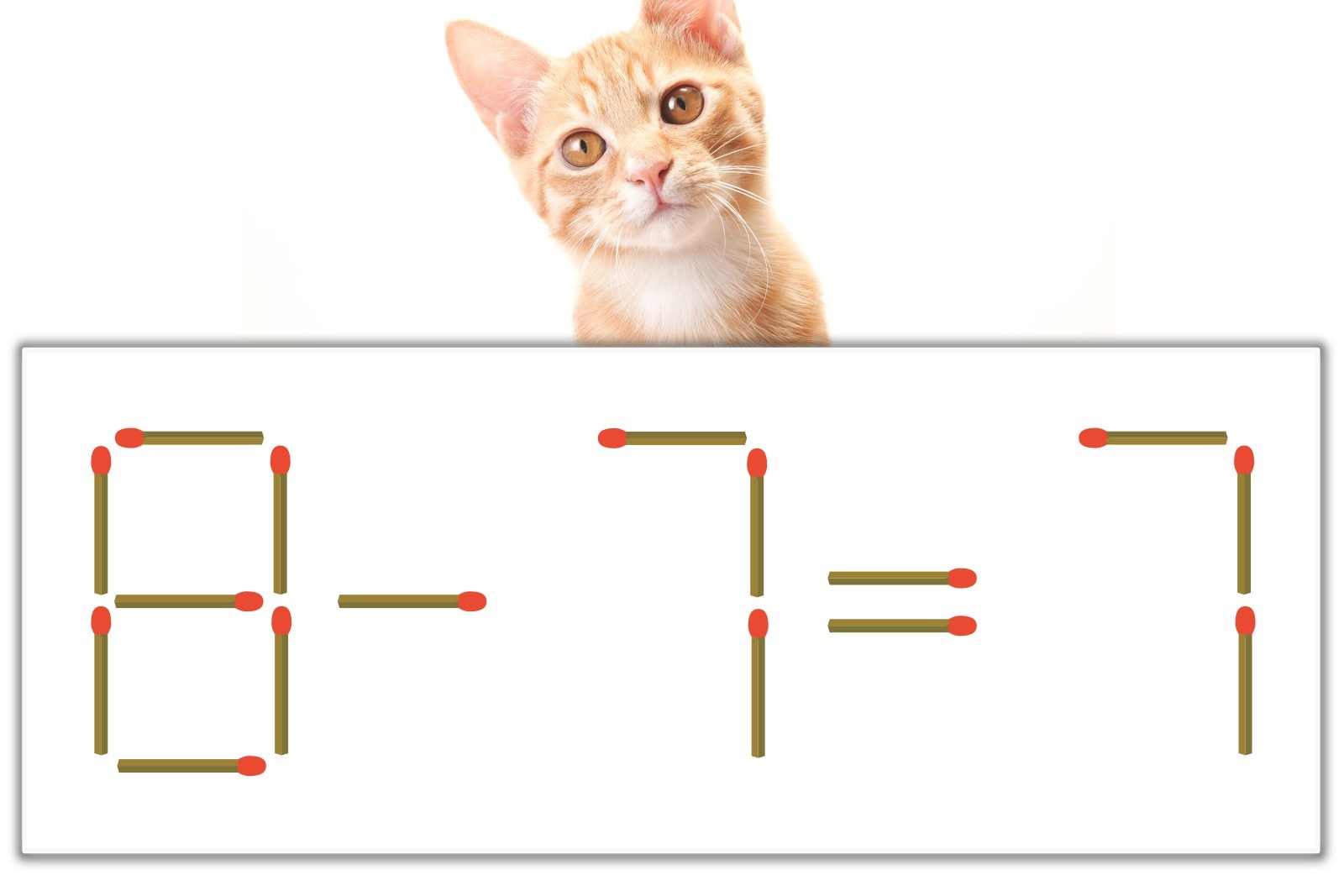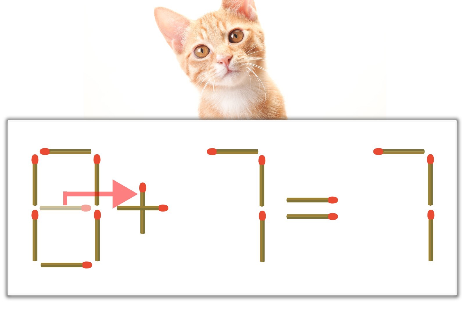 「8」のマッチ棒を1本、右にスライドさせて「+」を作り、「0+7=7」にする。※解答は複数ある場合があります。