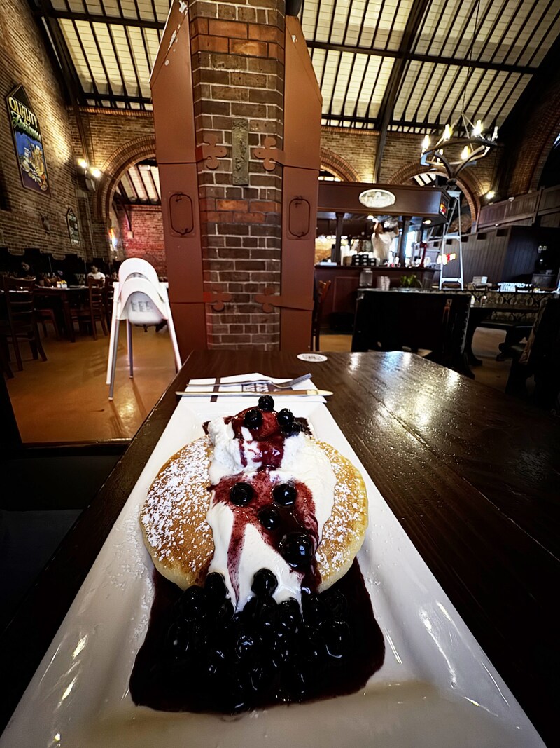 ブリスベンには、かつて教会だった建物をそのままパンケーキ屋にしたお店があります。そこで食べたブルーベリーパンケーキの価格は18.95AUD(約1900円)、アイスティーは5.90AUD(約580円)でした。