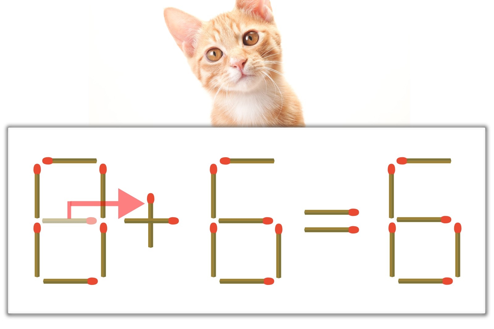 【問題】マッチ棒を1本動かして式を正しくしてください。