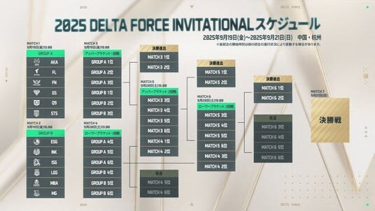 『Delta Force Invitational 2025』は3日間にわたり開催されます。初日はグループステージからスタートし、ダブルエリミネーション形式で各チームが激突。2日間にわたる熾烈な戦いを勝ち抜いた精鋭たちが、9月21日(日)のグランドファイナルでついに激突し、初代世界王者の座を懸けて最後の決戦に挑みます。