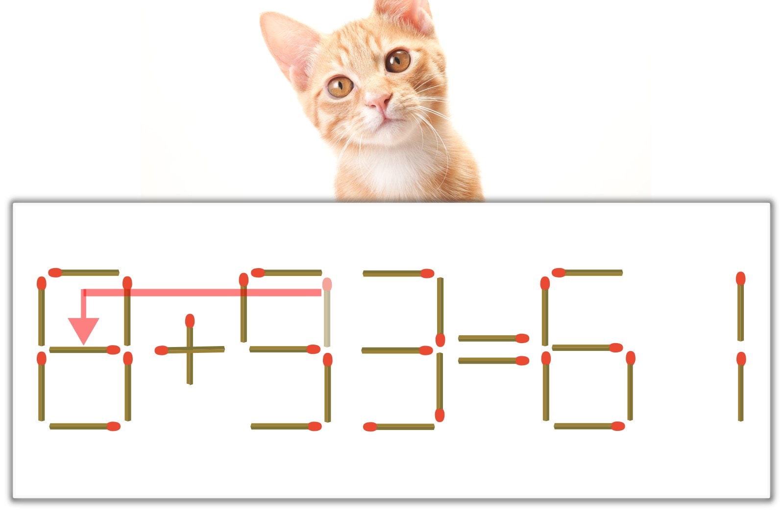 「9」を別の数字に変化させると答えが導き出せます。9のマッチ棒を1本移動させて、「0」を「8」にしてみましょう。すると、「8+53=61」が成立します。