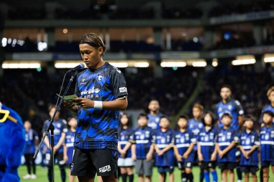 試合開始前にはフェアプレー宣言があり、キャプテンの宇佐美貴史選手が、「サッカー、スポーツに暴力も暴言もいりません。誰もがサッカー、スポーツを安心、安全に楽しめる権利を持っています。私たち1人ひとりのリスペクトの力、大切に思う心で差別暴力のない世界をつくり、守っていきましょう」と訴えかけました。